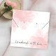 Feminine Jewellery Display Card with elegant script font and pink watercolor background. This jewellery holder card design has two earring hole placeholders and necklace slits - please note these are markers only and are not pre-punched, you can keep / remove the markers that you need.