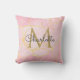 Pink Agate Geode Gold Monogram Elegant Script Cushion