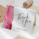 This elegant modern wedding thank you card features a pink watercolor agate border trimmed with faux gold glitter. The customisable text combines the words "Thank You" in charcoal grey handwriting script and the names of the bride and groom in italic font on a white background.