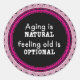 Those of us hoping to reach our 100th birthday live by this motto: "Aging is natural; feeling old is optional." Joyfulness and a positive attitude keep us young at heart as well as healthier in body. This sticker is a reminder that adding on years does not need to diminish our zest for life and sense of adventure.