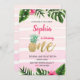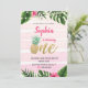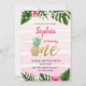 Tropical 1st Birthday Invitation Card with String Lights, Tropical Leaves and Gold Pineapple