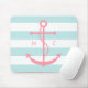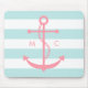 Pink Anchor and Monogram on Mint Stripes Mouse Pad
