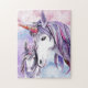 Pink And Amethyst Unicorn Mother and Child Jigsaw Puzzle