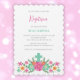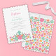 Pink and aqua flowers with cross baby girl Baptism Invitation