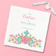 Pink and aqua flowers with cross baby girl Baptism Napkin
