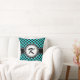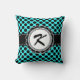 Elegant black and white retro style polka dots with your monogram in the centre. Customisable letter in the monogram, and the background colour (behind the polka dots) can be changed. Shown here as a reversible pillow wiht pink on one side and aqua on the reverse.