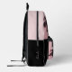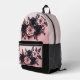 This unique modern backpack design for her features blush pink and black 3D roses and a custom name on the side.