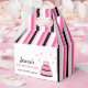 Our Pink and Black 60th Birthday Cake Party design features a cute pink and black 3-tiered birthday cake complete with polka dots, stripes, and stars and a number 60 on the cake. Perfect for a cute sixtieth birthday!