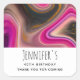 Birthday / baby shower / other event thank you sticker with a groovy looking abstract design. Pink and black colours mix and mingle together in a swirling motion. Sprinkles of faux gold glitter in between the layers.