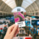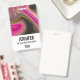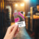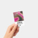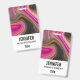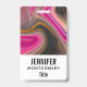 A name tag with a groovy looking abstract design. Pink and black colours mix and mingle together in a swirling motion. Sprinkles of faux gold glitter in between the layers.