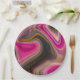 Pink and Black Abstract with Gold Swirls Paper Plate