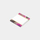 Sticky notes with a groovy looking abstract design. Pink and black colours mix and mingle together in a swirling motion. Sprinkles of faux gold glitter in between the layers. A white rectangle frame with a faux gold foil border, layered over for you to write inside.