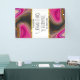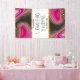 A wedding banner with a groovy looking abstract design. Pink and black colours mix and mingle together in a swirling motion. Sprinkles of faux gold glitter in between the layers. A white rectangle frame with a faux gold foil border, layered over top with your personalised text inside.