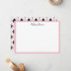 Our chic personalised stationery flat cards feature a soft pink border with your name or monogram on the top in script lettering. Reverse side reveals a modern pink and black argyle.