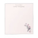 Notepad with a watercolor painting. 2 pink and black birds sitting on a tree branch with pink blossoms.
