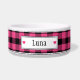 Coordinate your decor and your dog's personality with their dog bowl! Girly and black buffalo plaid is the background for this personalised dog bowl. Add your pet's name between the tiny hearts that emphasize how much your pet is loved.