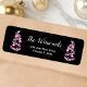 This elegant and chic return address label features a pink and black ribbon Christmas tree with baubles. The text combines handwritten script and modern sans serif fonts for a classy and sophisticated look. The falling snow, snowflakes and sparkles give a festive and magical touch. This is perfect for Christmas and the holiday season.