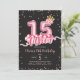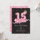 Pink and Black Crown Balloon Fifteen Birthday Invitation
