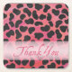 Pink and Black Dalmatian Pattern Thank You Square Paper Coaster