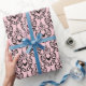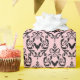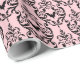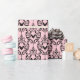 This whimsical Halloween design features a black damask pattern with bats on a pink background.