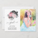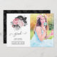Pink and black vintage roses graduation announcement photo card customisable to your event specifics. A portrait style photo is recommended.