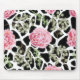 Pink and Black Giraffe Pattern and Flowers Mouse Pad