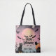 Pink and black Halloween with bats & black cats Tote Bag