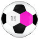 One section of the printed design area is pink in a hexagonal shape. Another section is customisable with black text on a white background. Disclaimers: The two printed black shapes may not be exactly placed or the same size as the other black pentagons on the soccer ball. The stitching lines within the printed design area are not actual stitching.