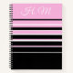 Pink, black and white horizontal lines adorn the front of this notebook.