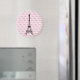 The Eiffel Tower sits atop a pink and black "Paris" background