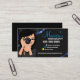 this business card is black and pink with a lens on it. Words can be rearranged and or taken off or added. You can also delete any social media icons by clicking on "Edit using design tool".