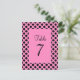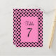 Black polka dot pattern on pink with room for a table number. You can customise and erase the word "Table" and centre the number.