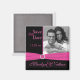 **** PLEASE NOTE that the ribbon and jewels are printed images and are not real. This hot pink and black photo save the date magnet matches the wedding collection shown below.