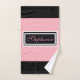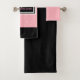 Dress up your bathroom with this one of a kind pink and black towel set with cream whimsical stars. Customise with your name on the hand towel and your initial on the bath towel.