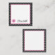 These fun note cards feature classic black and white polka dots with a cute pink and black daisy. Personalise with your choice of name or special text.
