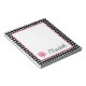 This fun notepad features classic black and white polka dots with a cute pink and black daisy. Personalise with your choice of name or special text.