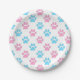 Pink and blue baby paws pattern paper plate