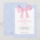 blue floral and pink bow baby shower invitation