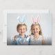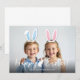 Celebrate Easter with this adorable personalizable photo card, perfect for siblings or little ones. The card features your custom photo with movable blue and pink bunny ears overlay that you can position, resize or remove using Zazzle’s editing tools to fit your photo perfectly. Make sure to adjust the ears to your photo, as they will not place automatically.