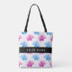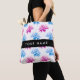 Pink and Blue Dahlia, Floral Pattern, Your Name Tote Bag