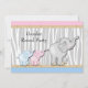 Adorable pink and blue baby elephant gender reveal party invitations. Add your details to the front and/or back of this cute elephant gender reveal shower invitation by adding your event details, font style, font size & colour, and wording. Some graphics graphics©delightful-doodles. Please note - all of the invitation designs you will find on Zazzle are printed graphics on flat paper stock with no actual jewels, bows, raised, embossed, or added parts or pieces.