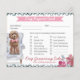 Your dog grooming clients will love these Pink and Blue Floral Dog Grooming Report! Use them to itemise all the services you provided during their dog's last groom, and use the back of the card to let them know about their dog's behaviour, coat condition and more. There's also space for you to recommend grooming products and additional services. Click the customise button to easily add your business name and contact details to this dog report card. NEW: Now you can change ALL the text on this card to suit your business.