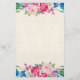 Stationery with a frame of pink and blue wildflowers, posies and pansies with various sprigs and leaves. Colourful and bright. The centre is a faux parchment image. Soft and summery.