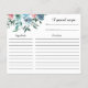 Pink and Blue Flowers Bridal Shower Recipe card