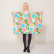 Cute colourful pink and blue flowers over light blue background. Customisable fleece blanket template