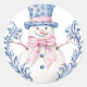 Pink and Blue Grandmillennial Snowman Classic Round Sticker