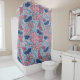 Pink and Blue Hand Drawn Floral Block Print Shower Curtain