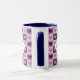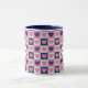 This mug was designed to be a pretty Valentine's Day gift, but it can easily be adapted to make a birthday or special occasion gift for her. It features a pretty pink, navy blue and white square hearts pattern as the background. Each side of the mug has an ornate white banner which is lined in matching blue and pink, and carries your custom text. Easily change it to her name on one side, your message on the other, or anything else you'd like. Very attractive without being glitzy or corny!