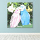 Pink and Blue Kissing Budgies and Angel Trumpets Canvas Print