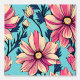Pink and Blue Large Flowers Pattern Wallpaper
